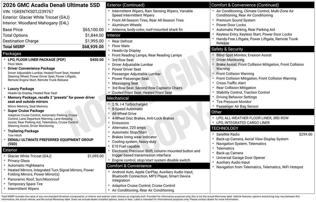 Please call for more information. If you don't see the car of your dreams in our huge inventory, chances are we can get it for you! 16 Speakers, 3 Years SiriusXM, 3.49 Final Drive Axle Ratio, 3rd Row 60/40 Power Split-Folding Bench, 3rd row seats: split-bench, 4-Wheel Disc Brakes, 6-Way Power Front Passenger Seat Adjuster, 7-Passenger Seating (2-2-3 Seating Configuration), 8-Way Power Driver Seat Adjuster, ABS brakes, Air Conditioning, Alloy wheels, AM/FM radio: SiriusXM with 360L, Apple CarPlay/Android Auto, Auto High-beam Headlights, Auto-dimming door mirrors, Automatic temperature control, Bodyside moldings, Brake assist, Bumpers: body-color, Compass, Delay-off headlights, Driver 4-Way Power Lumbar Seat Adjuster, Driver door bin, Driver Power Massage Seat, Driver vanity mirror, Dual front impact airbags, Dual front side impact airbags, Electronic Stability Control, Emergency communication system: OnStar Services capable, Exterior Parking Camera Rear, Four wheel independent suspension, Front anti-roll bar, Front Bucket Seats, Front Center Armrest, Front dual zone A/C, Front fog lights, Front Passenger 4-Way Power Lumbar Seat Adjuster, Front Passenger Power Massage Seat, Front reading lights, Full Leather Seat Trim, Fully automatic headlights, Garage door transmitter, Genuine wood console insert, Genuine wood dashboard insert, Genuine wood door panel insert, Heads-Up Display, Heated door mirrors, Heated front seats, Heated rear seats, Heated steering wheel, Illuminated entry, Leather steering wheel, Low tire pressure warning, Memory Package, Memory seat, Navigation System, Occupant sensing airbag, Outside temperature display, Overhead airbag, Overhead console, Panic alarm, Passenger door bin, Passenger vanity mirror, Power door mirrors, Power driver seat, Power Liftgate, Power moonroof, Power passenger seat, Power steering, Power windows, Radio data system, Rain sensing wipers, Rear air conditioning, Rear anti-roll bar, Rear reading lights, Rear side impact airbag, Rear window defroster, Rear window wiper, Remote keyless entry, Security system, Speed control, Speed-sensing steering, Split folding rear seat, Spoiler, Sport steering wheel, Steering wheel memory, Steering wheel mounted audio controls, Tachometer, Telescoping steering wheel, Tilt steering wheel, Traction control, Trip computer, Turn signal indicator mirrors, Variably intermittent wipers, Ventilated front seats, Voltmeter, Wheels: 22 x 8.5 After Midnight Machined Aluminum.