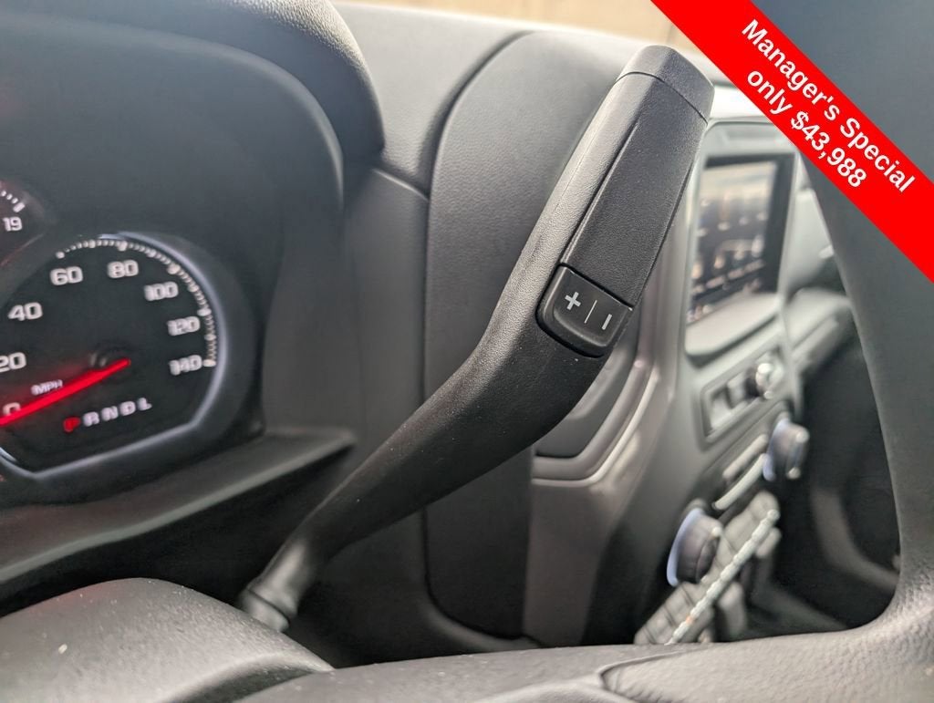 10-Way Power Driver Seat w/Lumbar, 120-Volt Bed Mounted Power Outlet, 120-Volt Interior Power Outlet, 170 Amp Alternator, 220 Amp Alternator, 3.5 Monochromatic Display Driver Info Center, 4-Wheel Disc Brakes, 4 Black Round Assist Steps (LPO), 40/20/40 Front Split-Bench Seat, 6 Speakers, 6-Speaker Audio System, ABS brakes, Air Conditioning, Alloy wheels, AM/FM radio: SiriusXM, Auto High-beam Headlights, Auto-Locking Rear Differential, Automatic Emergency Braking, Auxiliary External Transmission Oil Cooler, Black Exhaust Tip Bezels (LPO), Black Name Plates (LPO), Bluetooth® For Phone, Brake assist, Chevrolet Connected Access Capable, Cloth Rear Seat w/Storage Package, Cloth Seat Trim, Color-Keyed Carpeting Floor Covering, Compass, Custom Convenience Package, Dark Essentials Package (LPO), Deep-Tinted Glass, Delay-off headlights, Driver door bin, Driver vanity mirror, Dual Exhaust w/Polished Outlets, Dual front impact airbags, Dual front side impact airbags, Dual Rear USB Ports (Charge Only), Electric Rear-Window Defogger, Electrical Steering Column Lock, Electronic Cruise Control, Electronic Stability Control, External Engine Oil Cooler, EZ Lift Power Lock & Release Tailgate, Following Distance Indicator, Forward Collision Alert, Front anti-roll bar, Front Center Armrest w/Storage, Front Pedestrian Braking, Front reading lights, Front Rubberized Vinyl Floor Mats, Front wheel independent suspension, Fully automatic headlights, HD Rear Vision Camera, Heated door mirrors, Heavy-Duty Air Filter, Hill Descent Control, Hitch Guidance, Illuminated entry, Integrated Trailer Brake Controller, IntelliBeam Automatic High Beam On/Off, Lane Keep Assist w/Lane Departure Warning, LED Cargo Area Lighting, Low tire pressure warning, Manual Tilt Wheel Steering Column, Multi-Flex Tailgate, Occupant sensing airbag, OnStar & Chevrolet Connected Services Capable, Outside temperature display, Overhead airbag, Overhead console, Panic alarm, Passenger door bin, Passenger vanity mirror, Performance Red Recovery Hooks, Power door mirrors, Power driver seat, Power Front Windows w/Driver Express Up/Down, Power Front Windows w/Passenger Express Down, Power Rear Windows w/Express Down, Power steering, Power windows, Preferred Equipment Group 2CX, Premium audio system: Chevrolet Infotainment 3, Radio data system, Radio: Chevrolet Infotainment 3 System, Rear 60/40 Folding Bench Seat (Folds Up), Rear reading lights, Rear Rubberized-Vinyl Floor Mats, Rear step bumper, Rear Wheelhouse Liners, Rear window defroster, Remote Keyless Entry, Remote keyless entry, Remote Vehicle Starter System, Security system, Single Outlet Exhaust, SiriusXM Radio, Speed control, Speed-sensing steering, Split folding rear seat, Standard Tailgate, Suspension Package, Tachometer, Theft Deterrent System (Unauthorized Entry), Tilt steering wheel, Traction control, Trailering Package, Trip computer, Variably intermittent wipers, Voltmeter, Wheels: 18 x 8.5 Black Painted Aluminum, Wi-Fi Hot Spot Capable. 2024 Chevrolet Silverado 1500 CARFAX One-Owner. Clean CARFAX.